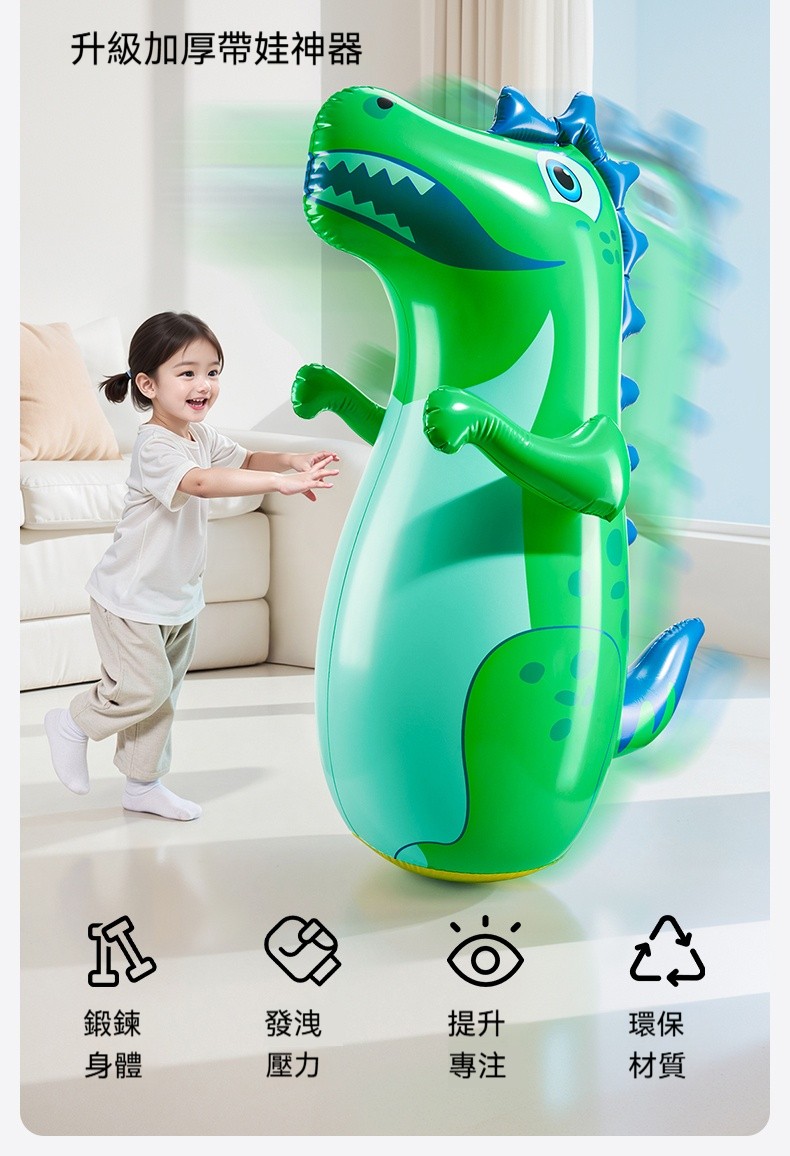 【台灣專賣】不倒翁充氣恐龍 加厚材質閃電俠立式搏擊玩具 兒童發洩解壓/室內鍛煉/趣味互動 送禮首選